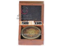 This Compass IsMade Of Brass In Decent Look.This is an antique replicaCompass.This Beautifull Brass Compass is in Good WorkingCondition.Small beautiful story is Engraved Under the Lid.Thiscompass Has beautifull Wooden Box.Its Needle Shows Quick Deflectionof North South Direction.