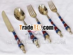 Beautiful gift for collector.Size- knife-23.5cmlong, spoon-21cm, fork- 20.2cm & small fork-18.5cm & 18cmlong.