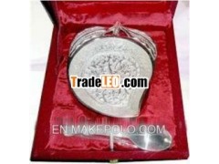 Beautiful gift for collector.Aperfectgift for all purposes. This proves to be an elegant gift forDiwali, Dusherra etc. Gold is the most precious metal and isimmensely used for gifting purpose. Mango shape silverplated designer bowl along with a spoon. Beautifully decoratedwith floral carvings to give a traditional look.A must haveaccessory for your diningtable.